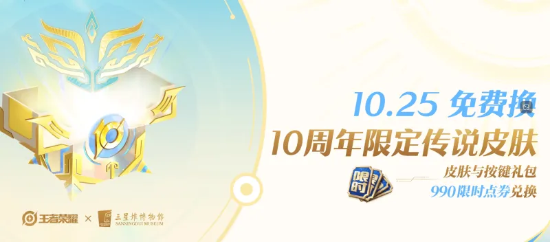 目前该皮肤还没有确定是谁的,但三星堆主题可让我浮想联翩,25日该皮肤上线,作为十周年的限定皮肤,我想质量方面应该是可以跟年限对标的。