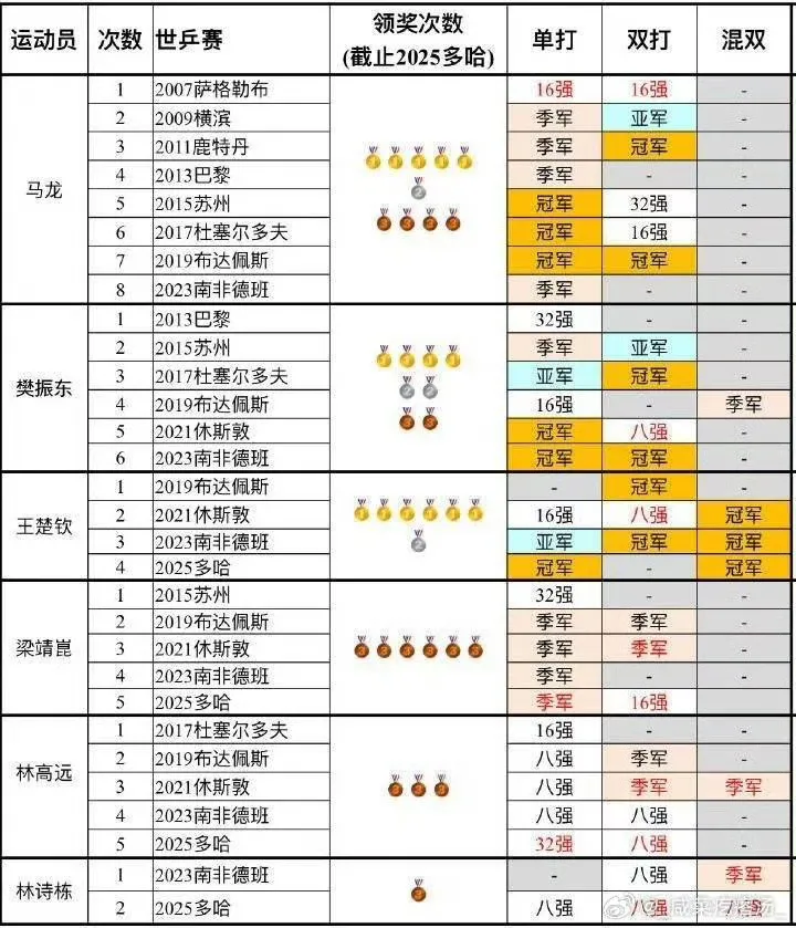 咋 把人家樊振东青奥会的冠军吞了?表格里面有一个问题就意味着整个表格都不可信了做表严谨点还有樊振东王楚钦有饭圈我都能理解毕竟都还算年轻 吸引了容易激动的大批年轻人互相攻击我也能理解毕竟俩人存在竞争马圈跳这么欢是图什么我是真不能理解
