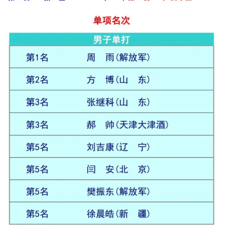 第一次知道原来樊振东当时成绩这么。。八一真是资源丰富啊