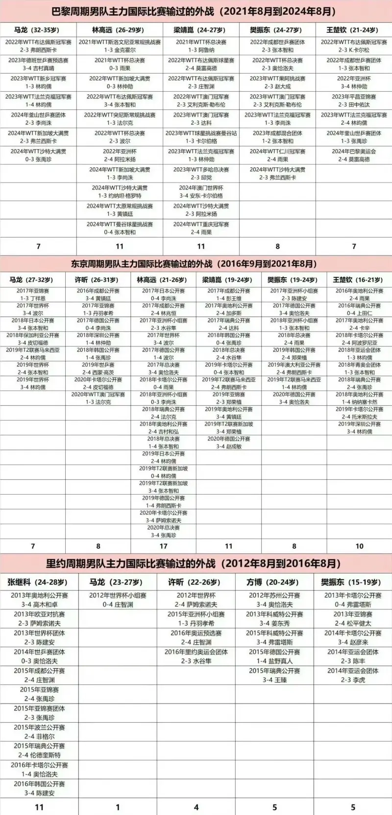 从里约到巴黎周期马龙都是男乒主力里外战输最少的