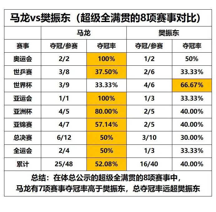 有没有发现,虽然碰瓷马龙不行,但是好像都默认他是历史第二了,然而马龙当年可是世锦赛三连冠后才被认为超过老瓦的,樊振东的世锦赛甚至含金量还不足(人不齐七场都没打满),但就是因为碰瓷马龙,所以即便输了也莫名其妙就偷偷超老瓦了,难道这营销还不够成功吗?
