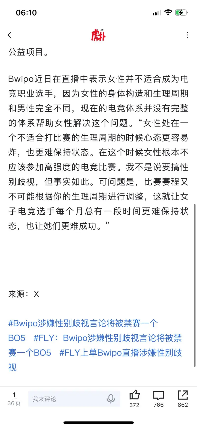 [情报站]Bwipo发文:我的言论无知且不尊重女性,会认真反思努力改正