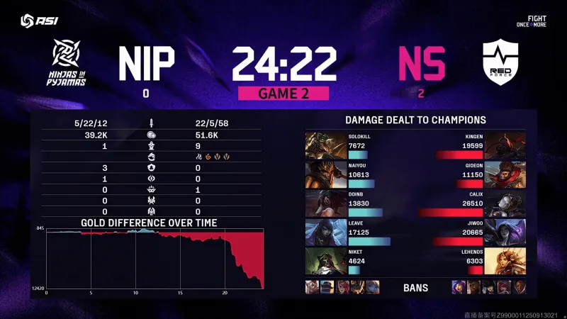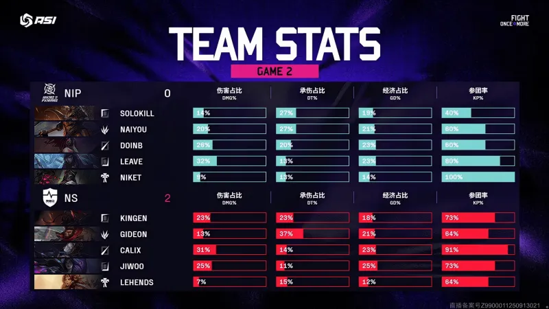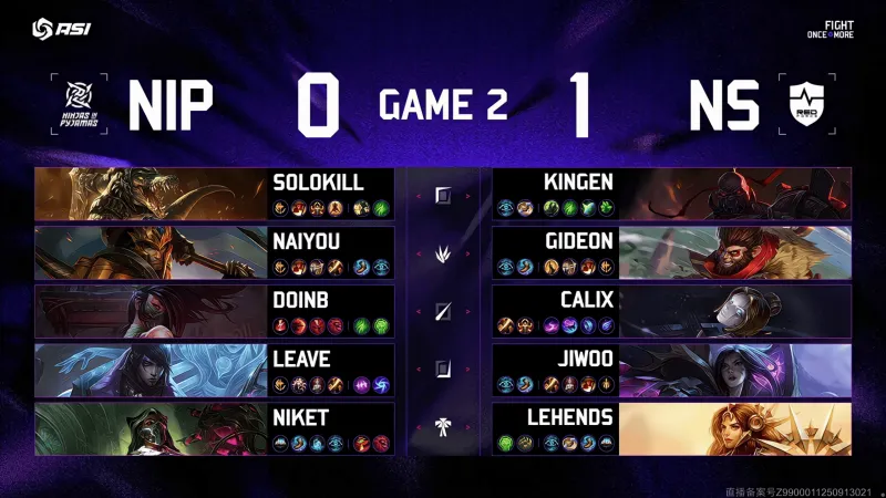 虎扑10月09日讯 Game2:蓝色方NIP,红色方NS