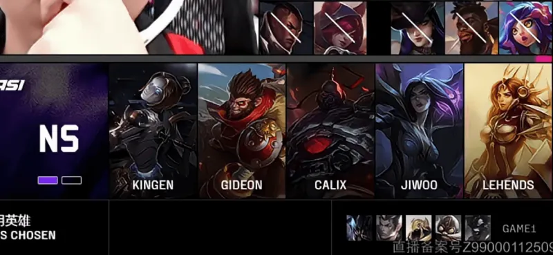 NS选用:Kingen赛恩、GIDEON猴子、Calix发条、Jiwoo卡莎、Lehends蕾欧娜
