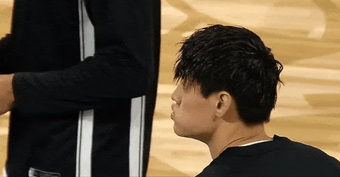 赛前,镜头给到登场热身的曾凡博,太阳篮网中国赛即将开始。