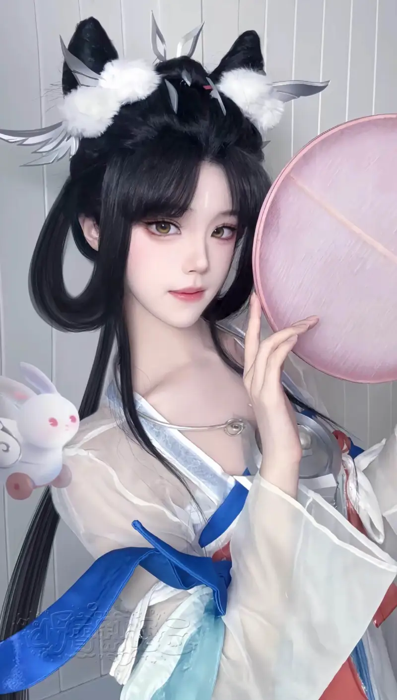 当然,小白兔奶糖还cos过嫦娥的如梦令,她这个造型比较的妖娆,手中拿着一把红色的团扇,然后旁边还有一对可爱的玉兔,搭配她白皙的锁骨,这个造型很仙气也很精致。