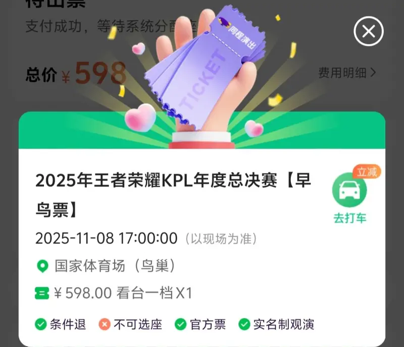 虎扑10月11日讯 15秒!2025KPL年度总决赛-决赛 早鸟票全部售罄!原文如下: