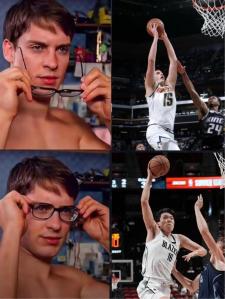 开拓者官媒分享杨瀚森的赛场照,并配文:第三节拿下14分... 加油,瀚森!