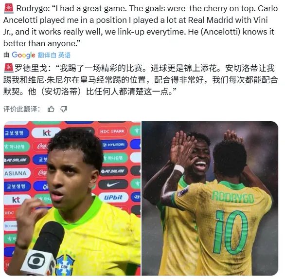 维尼接受采访说的是他合作过的教练里、安胖是最信任他的教练,这话说的完全没毛病啊,这是巴西队比赛、肯定要夸巴西队教练啊、更何况安胖的确是最信任他的教练,并且维尼能有今天的成就在该感谢的就是安胖,安胖之于维尼,就像弗格森之于C罗