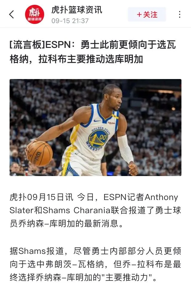 那几年都知道勇士缺中锋,外线有水花内线格林没有进攻能力。杜兰特离队后迫切需要选一个有天赋的内线球员。20选秀乐透成才的也没几个,这个顺位选怀斯曼没问题。问题是锋线已经有了嘴哥,为啥还要选一个只有运动天赋可见的纯毛坯库明加呢?这类球员在一支季后赛球队基本只能做替补发育极慢,而且还是在勇士这种战术素养极高的球队。短时间内肯定挤不掉格林和维金斯位置的