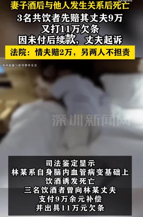 虎扑10月12日讯 女子林某与李某等三人一起喝酒后,李某与林某发生性关系,次日凌晨,李某发现林某死亡。事后,三名共同饮酒者向林某丈夫支付补偿款9万余元,三人还出具了11万元欠条。因后续补偿款未支付,林某丈夫及子女将三人诉至法院索赔11万元及利息。9月16日,青海大通县人民法院公布一审判决,判令李某一次性赔付补偿金2万元。