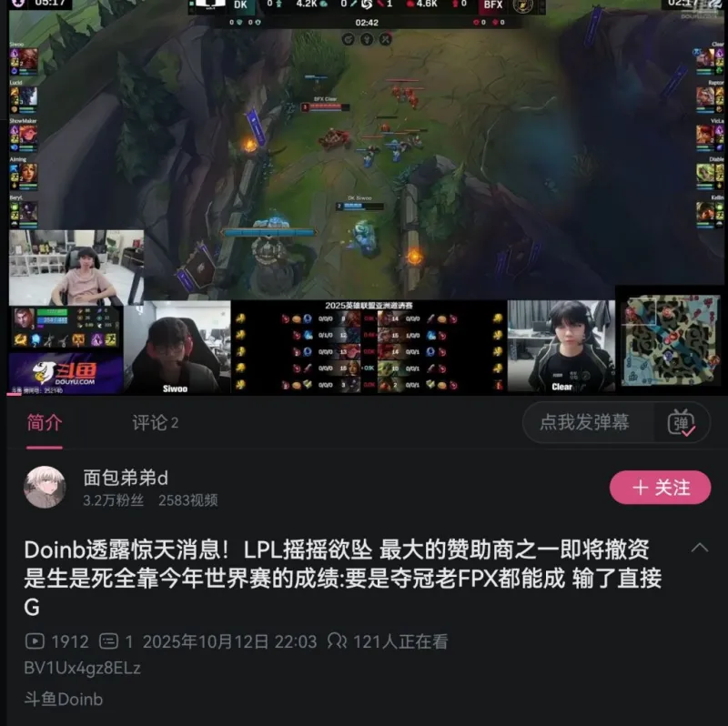 按照这些B去年说的今年的LPL在去年世界赛结束就已经完蛋了,怎么现在还有世界赛打呢