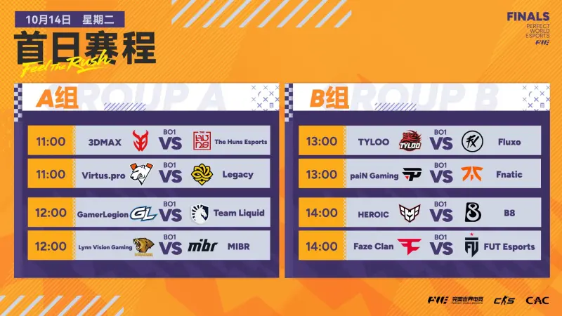 虎扑10月13日讯 CAC首日(10月14日)赛程预告: