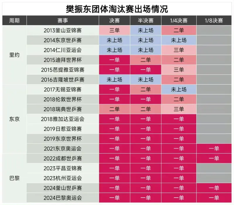 其实团体赛适当变阵是合理的,但是樊振东打了这么多年一单不论状态好坏教练组从没想过变阵,于是有了日乒派出当时还没怎么被研究的挥空冲击樊振东,让他只能抓紧开赛前的一点时间一边啃面包一边看录像准备;有了釜山世乒赛面对主场起爆的韩男两位队友相继输球,当时状态并不好的樊振东积极调动自己连着两个3:0压制对方的气焰。看到现在连15岁小孩都不敢打的领军,真是唏嘘。