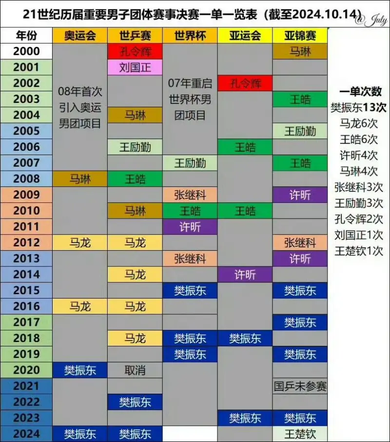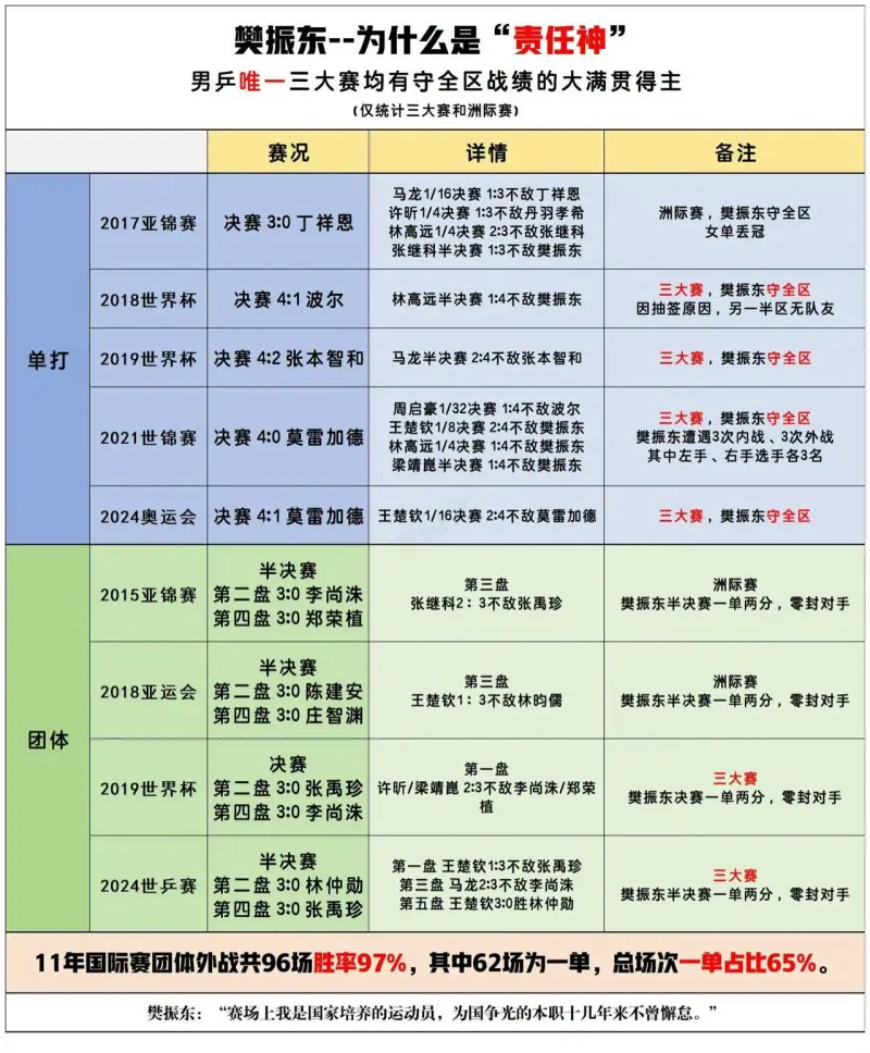 乒丝再怎么造谣抹黑都改变不了樊振东一单次数=三剑客之和=二王一马之和,单打状态再不好团体赛也会毅然决然顶上去,这就是责任神。