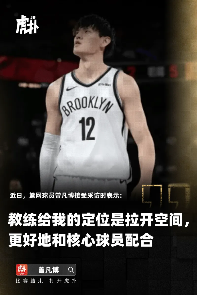 近日,篮网球员曾凡博接受采访时表示:教练给我的定位是拉开空间,更好地和核心球员配合。