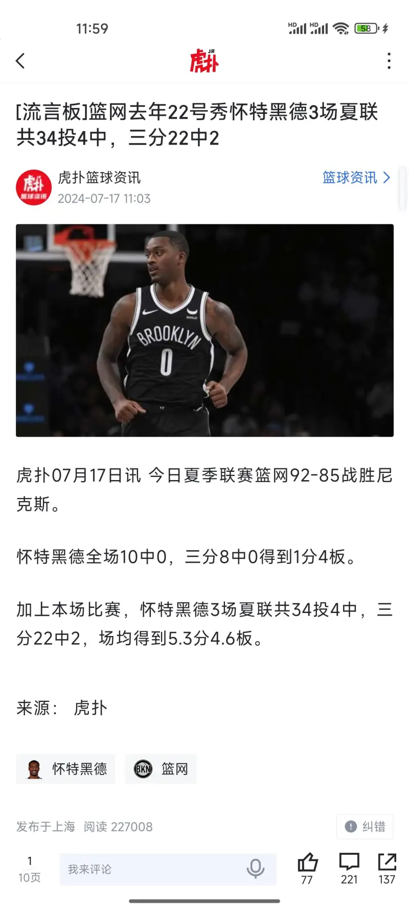 “篮网裁掉了2023年首轮秀怀特黑德。他在杜克大学打了一个赛季就参加了选秀,但是整个NBA生涯一直饱受伤病的困扰。”
