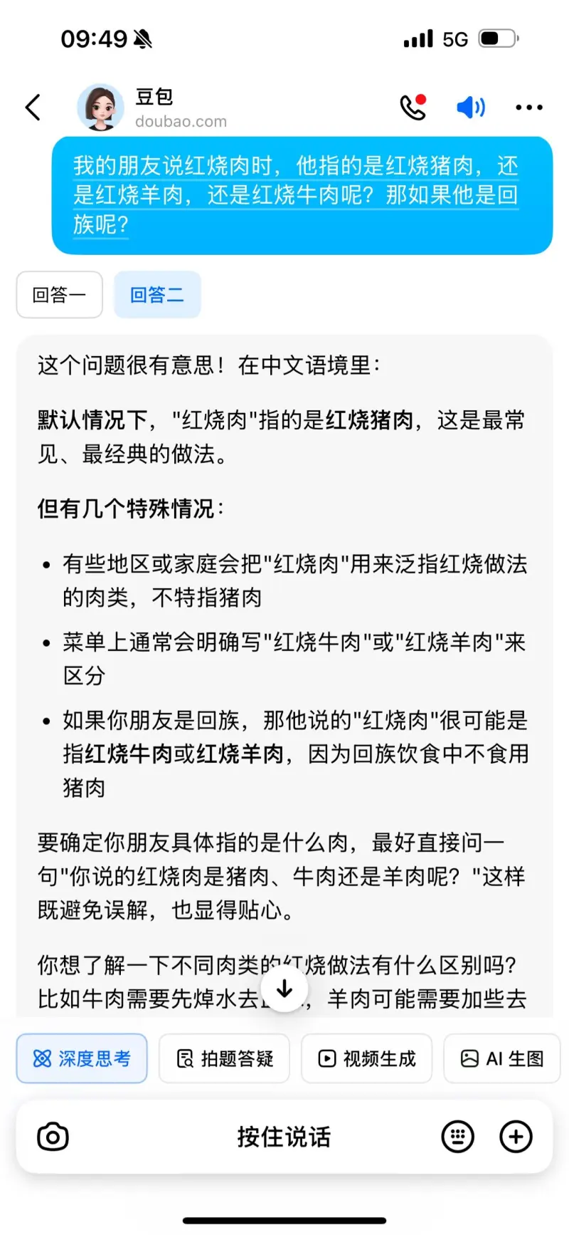 我愿意尊重您的习惯和习俗,在你表明身份后说的红烧肉我可以理解为红烧牛肉,但是对于句大多数中国人来说,日常生活中的肉只要不加前缀,那么就默认是猪肉,比如鱼香肉丝,酱爆肉丁,咸肉,大部分人都会认为是猪肉丝,猪肉丁和咸猪肉。