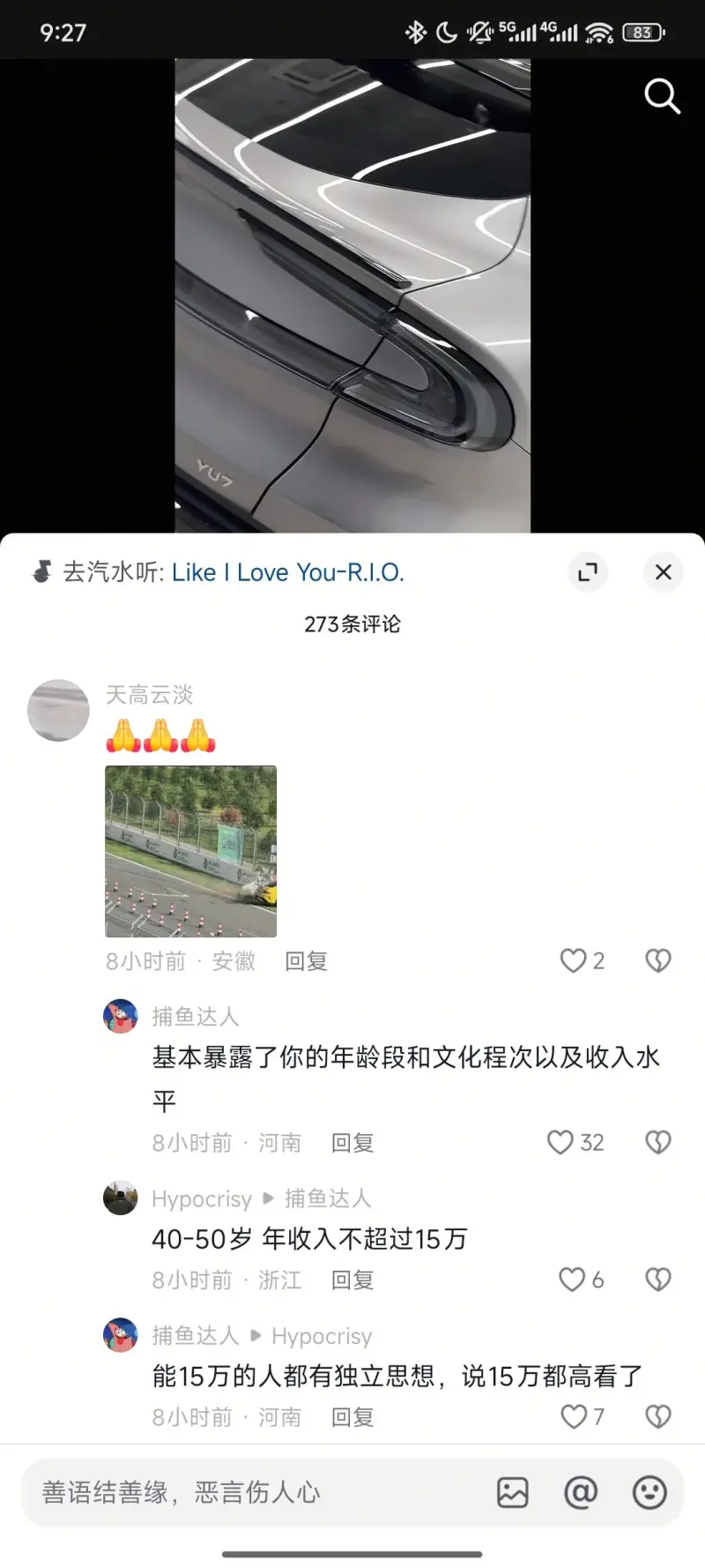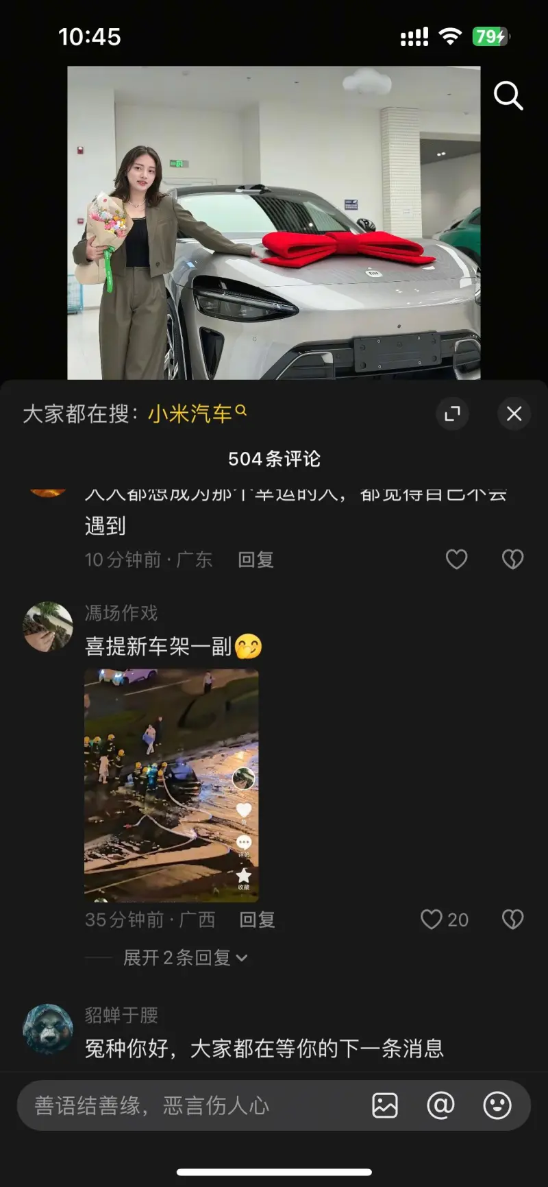 一个几十个粉丝的UP主发的提车视频下面有上万回复,其中90%以上在谩骂诅咒车主,就这还有人能觉得是正常的流量反噬。