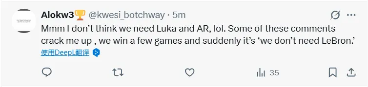 -嚯,我觉得我们不需要卢卡和里夫斯啦,哈哈。有些评论真是让我笑到不行,赢了几场球就突然变成"我们不需要勒布朗"了。