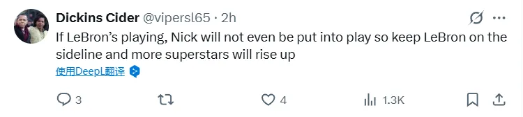 -若勒布朗上场,尼克连出场机会都没有,所以让勒布朗坐在替补席上,更多超级巨星自会崛起。