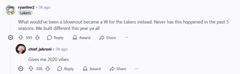 -(595赞)原本会被爆冷的比赛反而成了湖人的胜利。这在过去5个赛季中从未发生过。我们今年的表现与以往不同