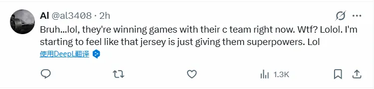 -兄弟...哈哈,他们现在用第三阵容都在赢球。搞什么鬼?哈哈哈。我开始觉得那件球衣简直像给他们开了超能力。哈哈