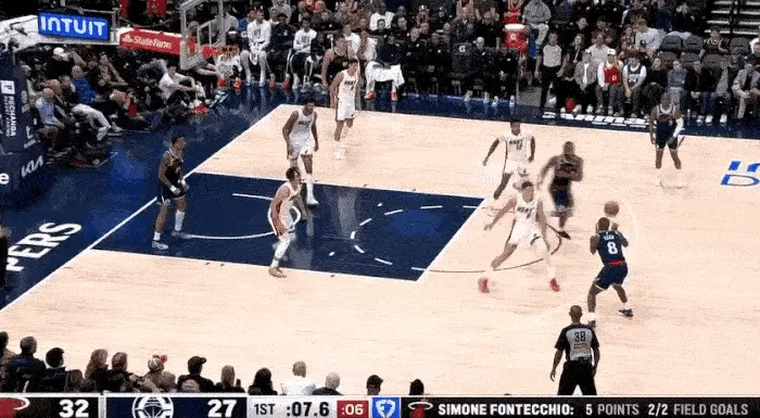 本场祖巴茨面对阿德巴约,几乎被打爆。阿德巴约得到全队最高的 25 分。