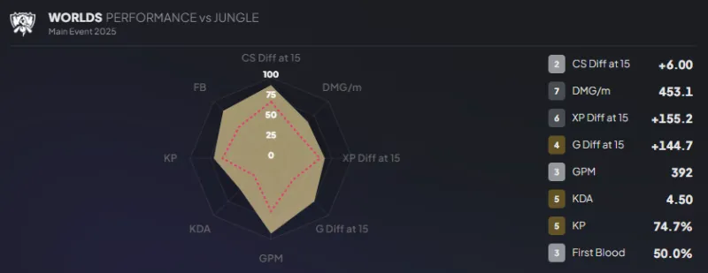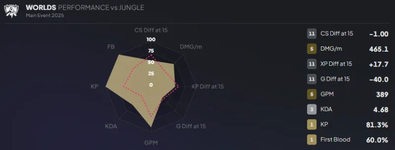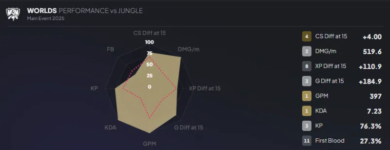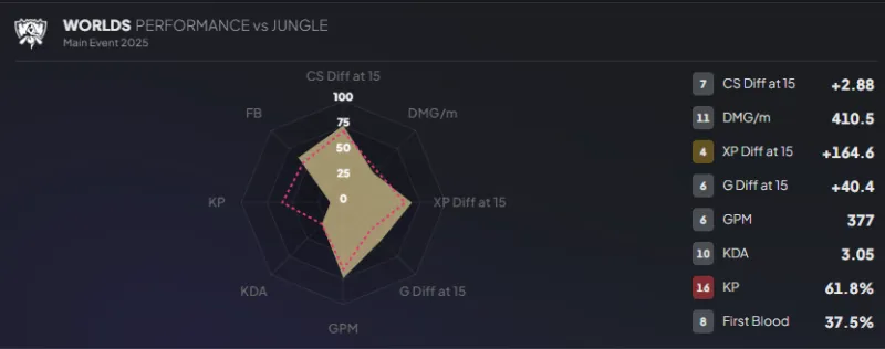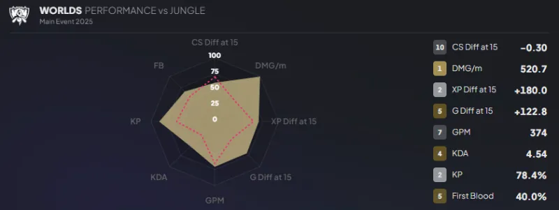 分均经济打野位第二,分均伤害居前列,可惜参团率倒数