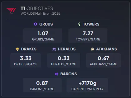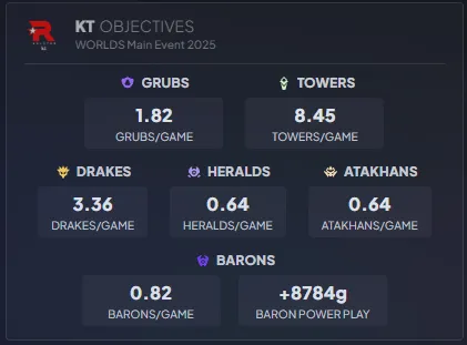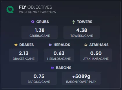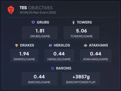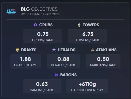 八强队伍里倒数第一的场均小龙数,十六个队排第十四(15BLG、16咖哥)