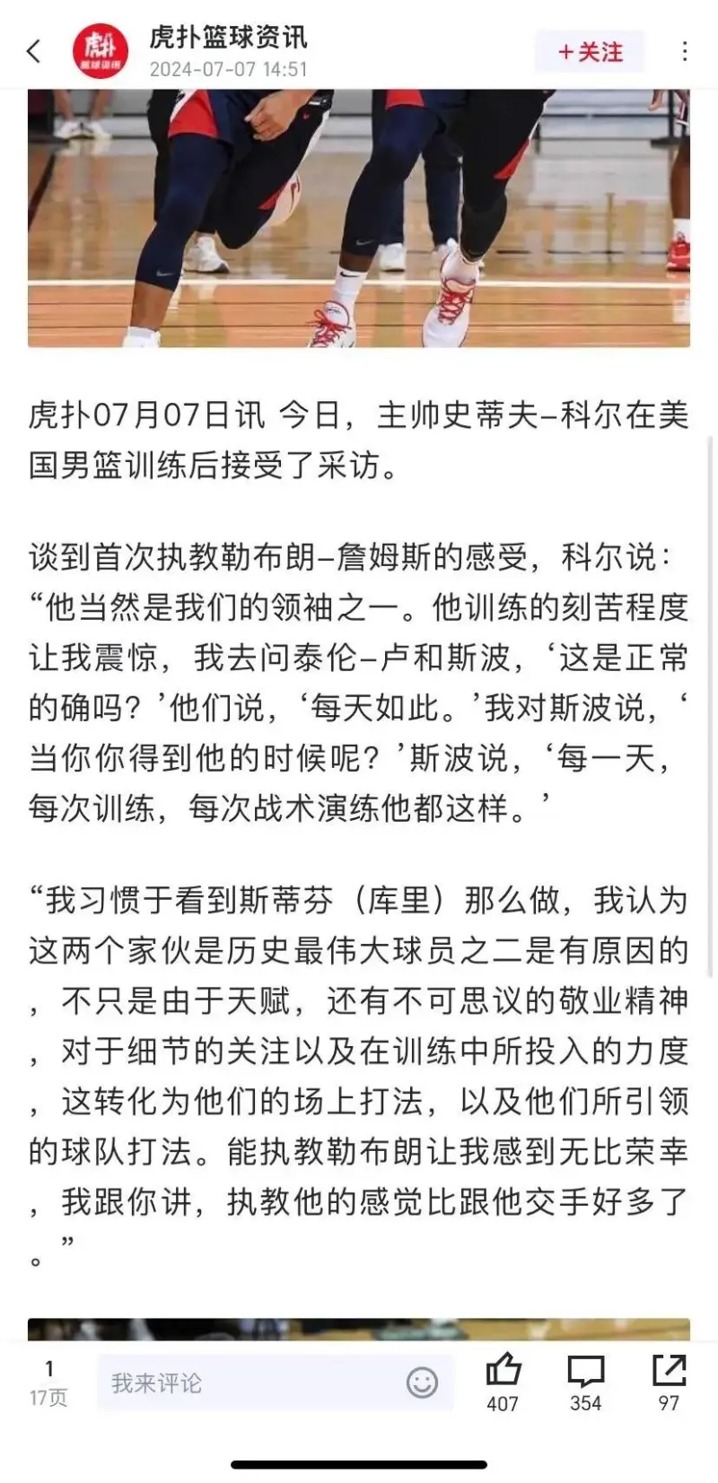 詹姆斯都四十多了还能保持这样,你真的相信他不训练不自律么?