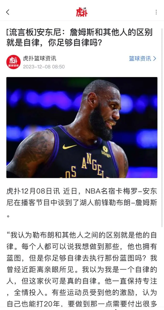 作为詹姆斯球迷,他纵使有万般不堪,我都觉得他二十多年如一日的自律是不可质疑的,我自问我做不到