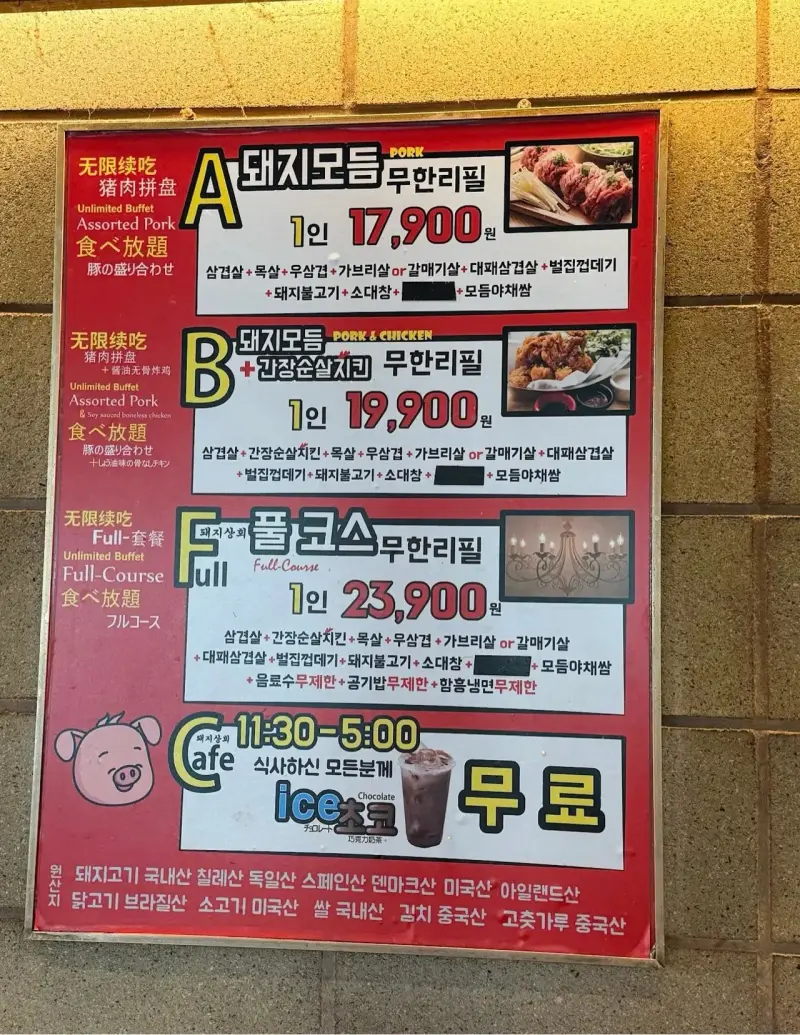 韩国作为发达国家 不至于吃不起肉吧… 自助烤肉店总有吧 有没有懂哥知道一顿多少钱? 我们这自助烤肉60块随便造
