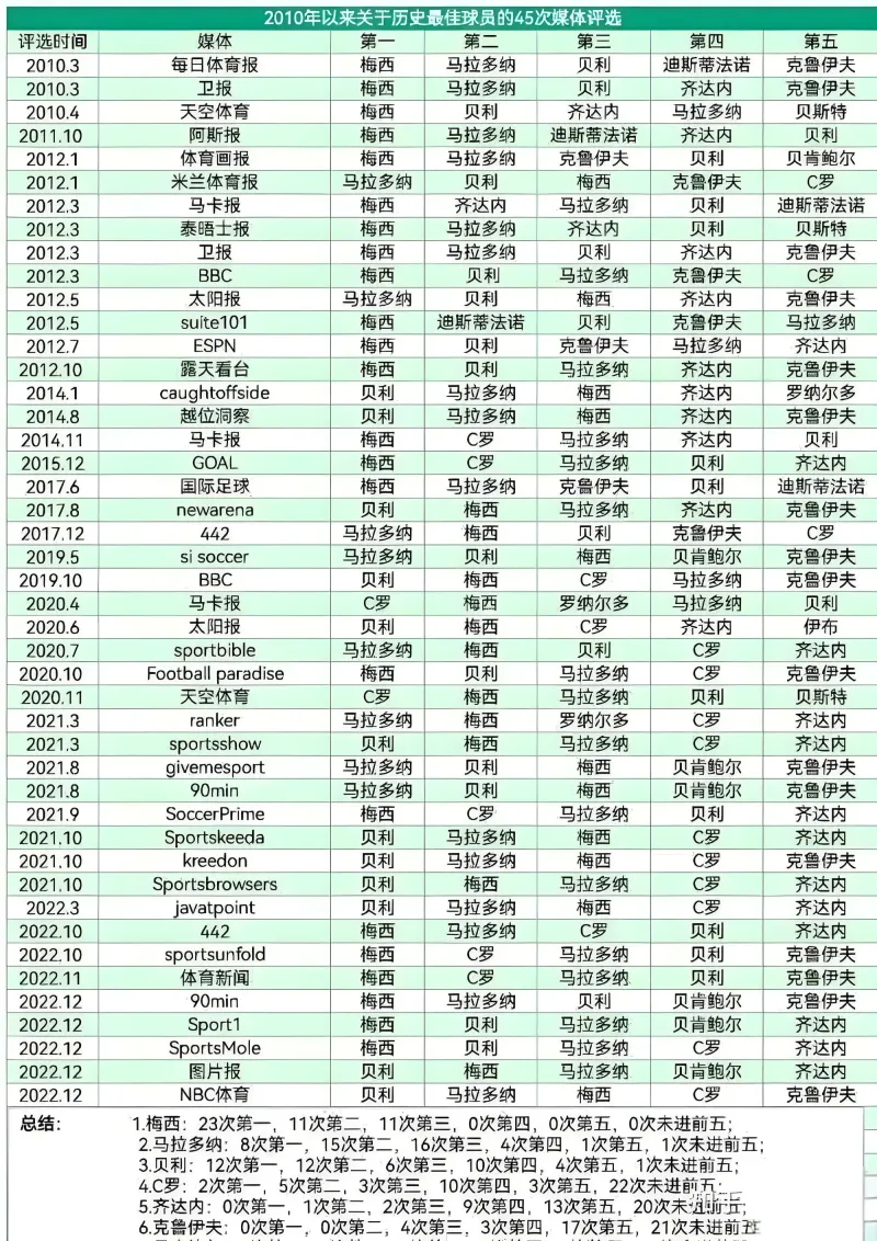 至于阿迪达斯赞助的金球奖,唯一旁落的一届是因为没有旗下球员进入候选,以及耐克球员表现再好排名也大幅落后(10决赛奉献绝杀的小白仅名列第五)的事实,则湮没在最佳阵容是嘉实多赞助的舆论中!