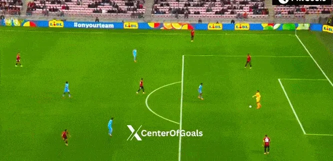 第29分钟曼赞比扳平比分的进球,尼斯匪夷所思的后场失误被铃木唯人断球: