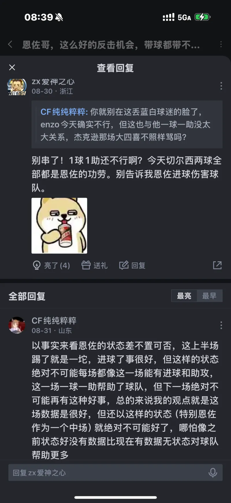 恩佐最近良好的表现让我想起来赛季初踢富勒姆2:0那场,虽然恩佐一球一助,但当时状态多烂看过的都知道,就这样还有逆天人迷洗,说我tm是串,明眼人都知道这次恩佐足够“幸运”有了数据,不然早就低分了。