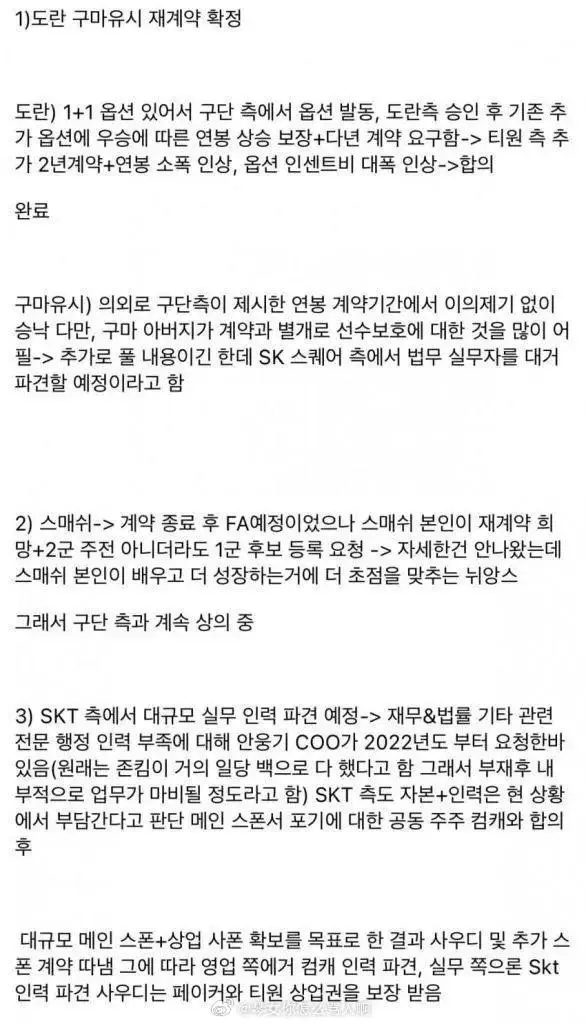 虽然没有异议地接受了俱乐部提出的年薪合同,但 Gumayusi 父亲要求在合同外增加更多的选手保护条款。