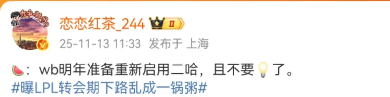 他本来就是纯摆烂啊,你去看wbg的赛后语音,这人能全场从开局到结束一句话不说的,还有上次赛后采访,都明说了自己马上不打了,真的没有一点职业道德