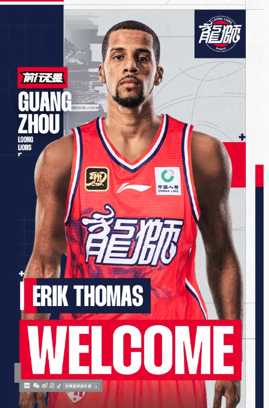 虎扑11月13日讯 广州男篮社媒官宣,欢迎Erik Thomas加入广州龙狮。