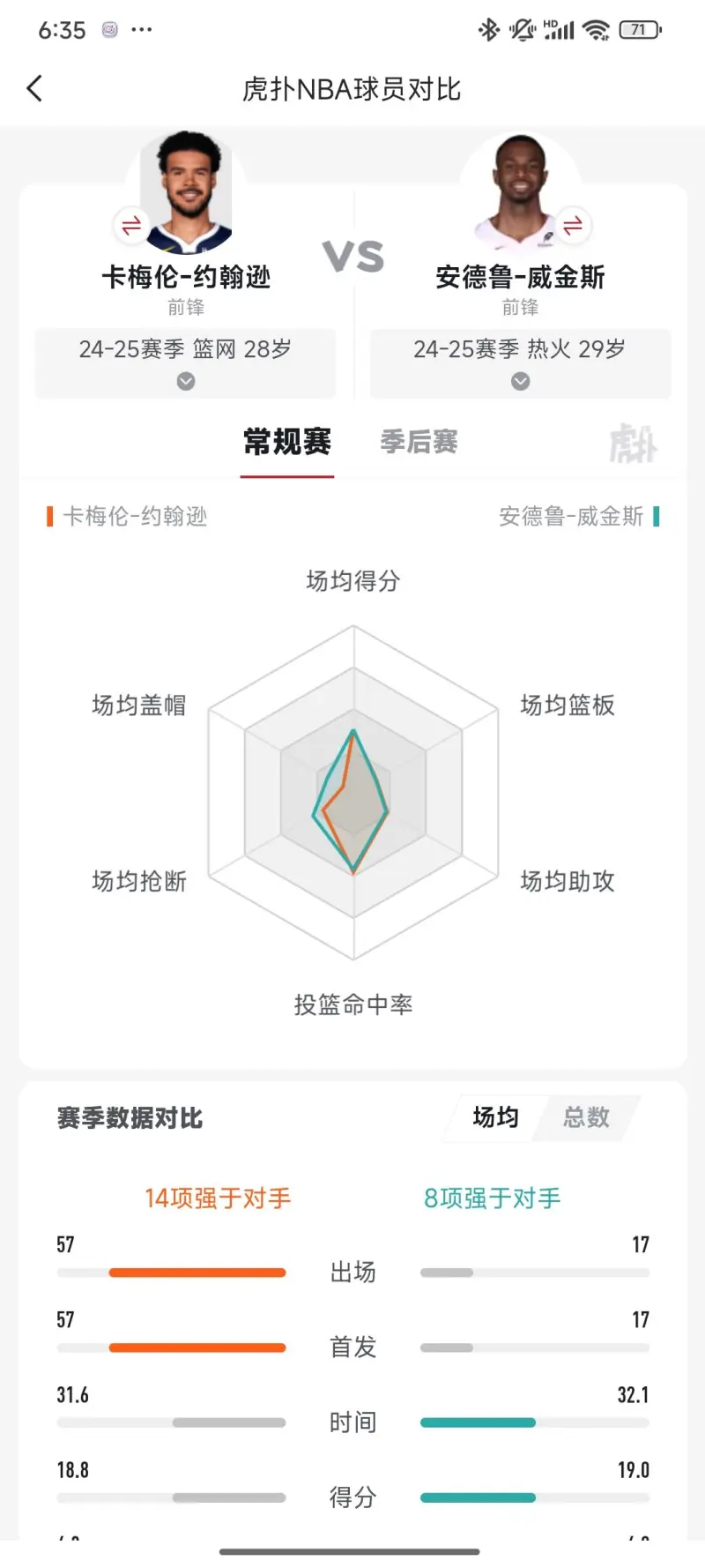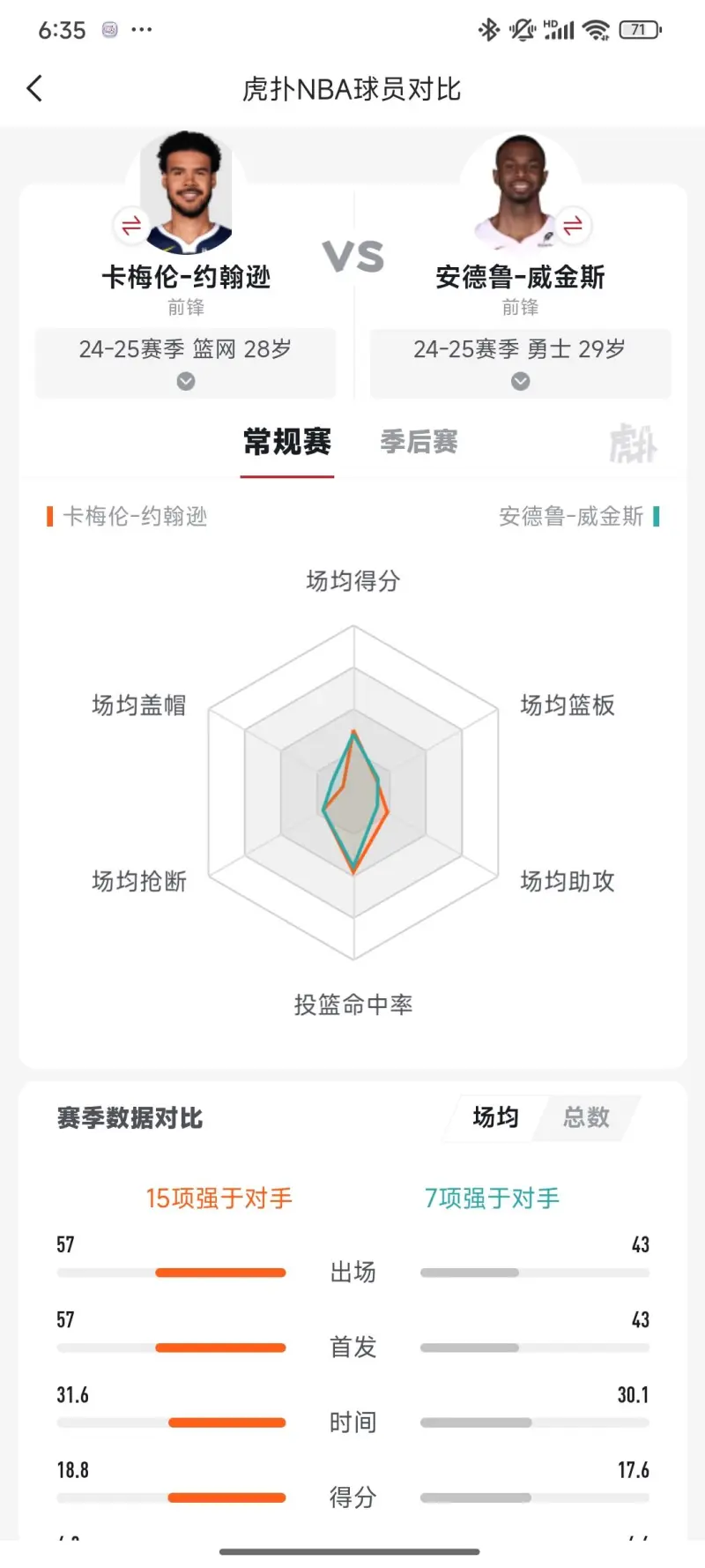 只比上赛季那肯定是卡约更好啊 不管是产量还是效率 也别吹威金斯防守 上赛季湖勇最后时刻被里弗斯一步过还历历在目 勇士防守助教都说他防守状态下滑的厉害 当然这赛季卡约目前为止打的很➗ 跟上上赛季威金斯一个水平 所以还是期待他赶紧回暖吧