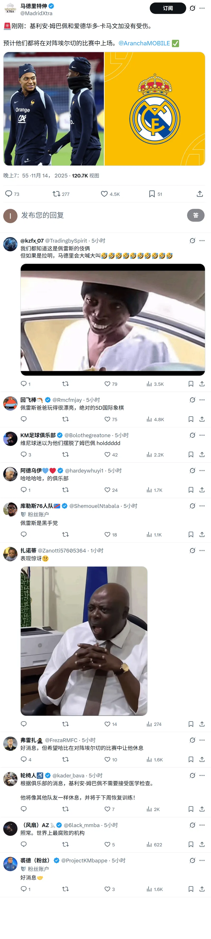 Re:传闻:姆巴佩和卡马文佳无碍,将参加对埃尔切的比赛