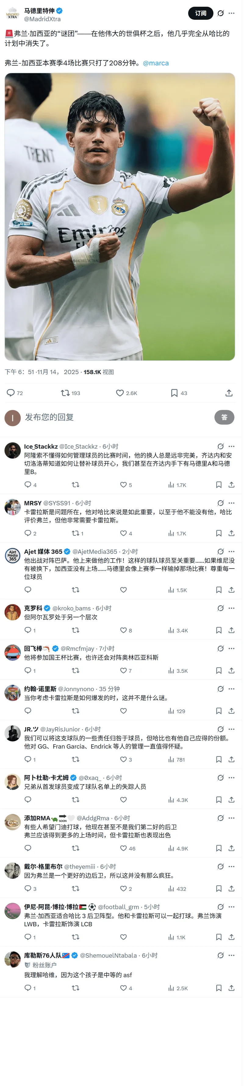 最离谱的是上的4场里2场首发打满全场,2场替补换下的是维尼修斯。