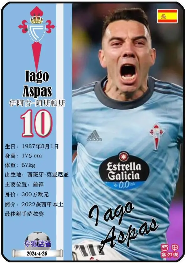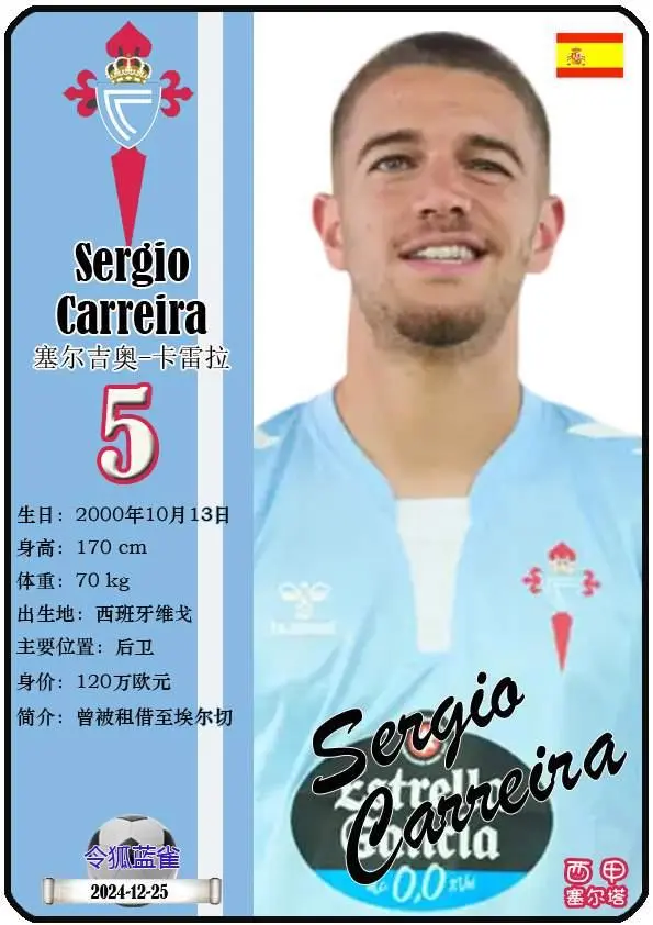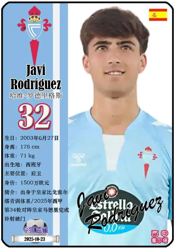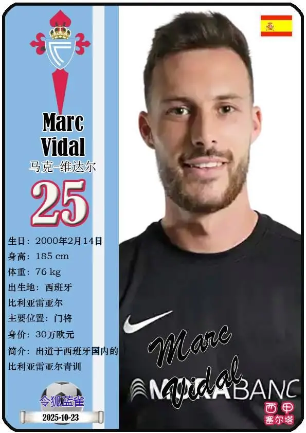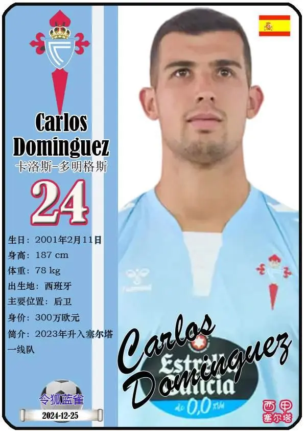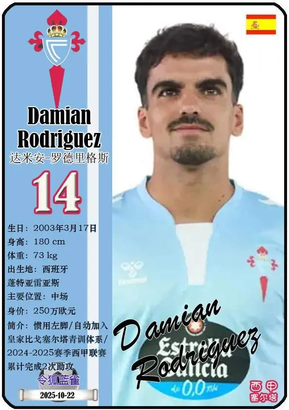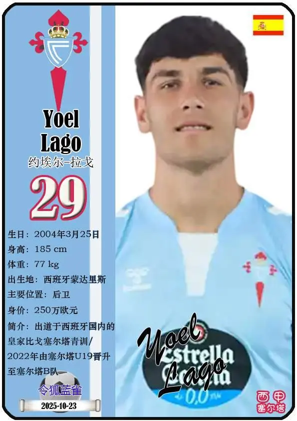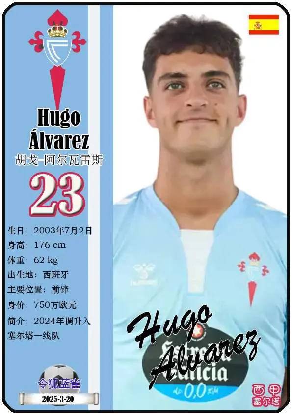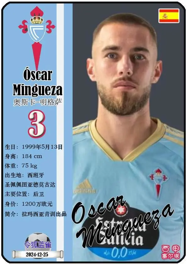 西甲塞尔塔足球俱乐部成立于1923年7月12日,距今已有102年历史。截至2025年10月23日,球队主教练是克劳迪奥·希拉尔德斯,队内拥有球员伊阿古-阿斯帕斯、费兰-尤特格拉、博尔哈-伊格莱西亚斯等。本期以球星卡的形式展示目前西甲塞尔塔足球俱乐部的26名球员(按球衣号码排序):