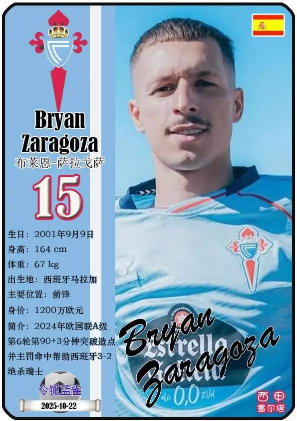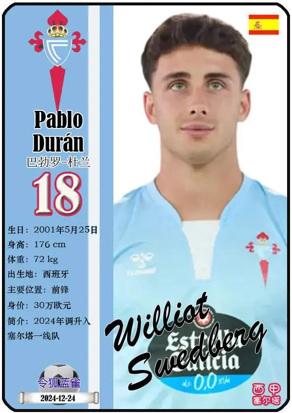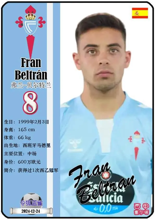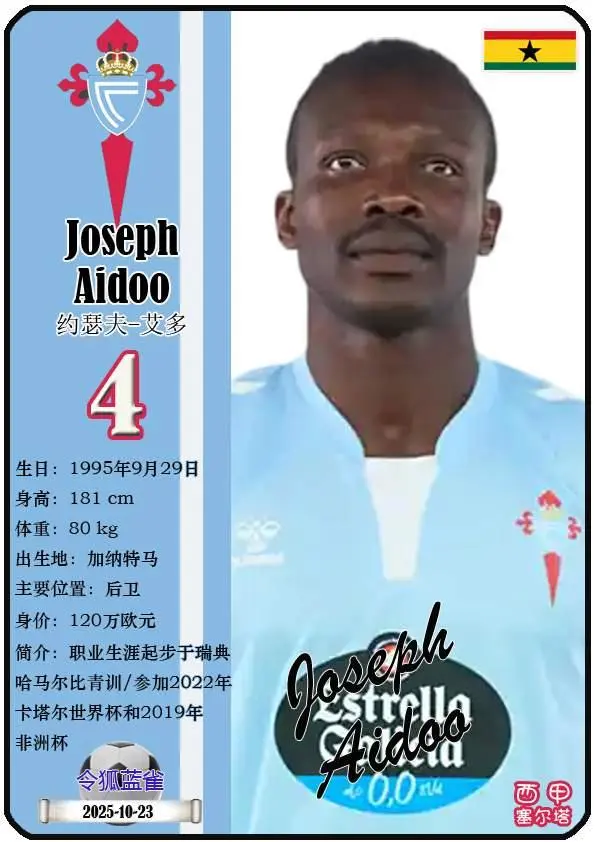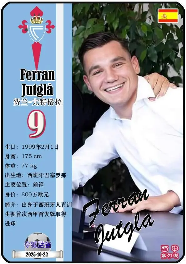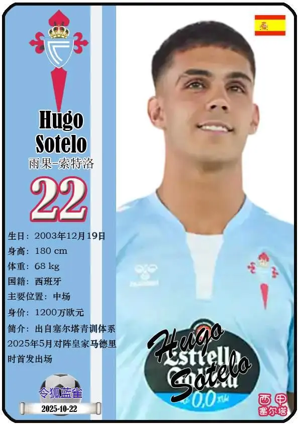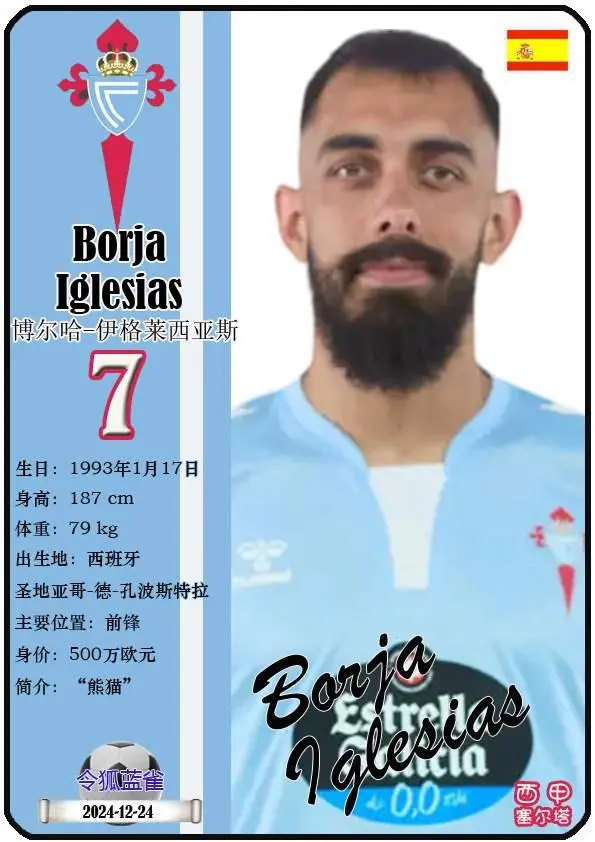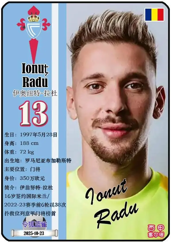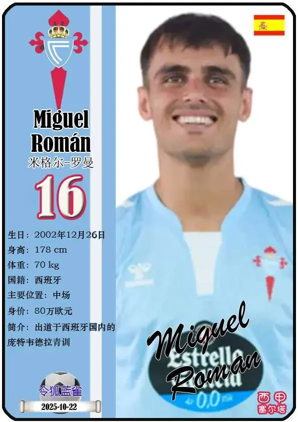 西甲塞尔塔足球俱乐部成立于1923年7月12日,距今已有102年历史。截至2025年10月23日,球队主教练是克劳迪奥·希拉尔德斯,队内拥有球员伊阿古-阿斯帕斯、费兰-尤特格拉、博尔哈-伊格莱西亚斯等。本期以球星卡的形式展示目前西甲塞尔塔足球俱乐部的26名球员(按球衣号码排序):
