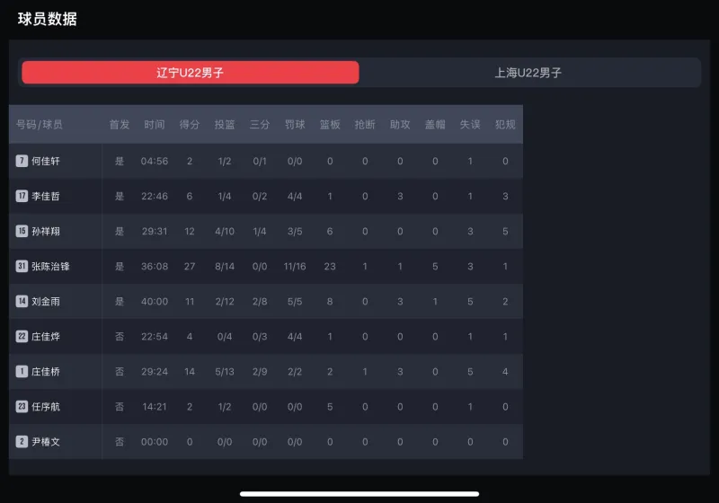 没啥可说的了,能打到现在已经很可以了,何佳轩开场五分钟就受伤离场,孙祥翔五犯离场,庄佳桥一次突破上篮摔倒膝盖,踉跄的坚持,打到第四节还能上场的就6个人了,确实打不动了。此次U22,九武士nb!