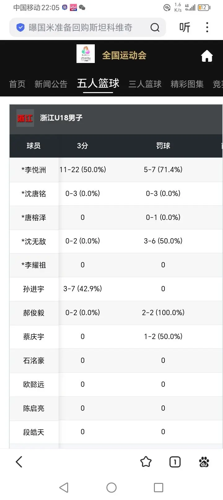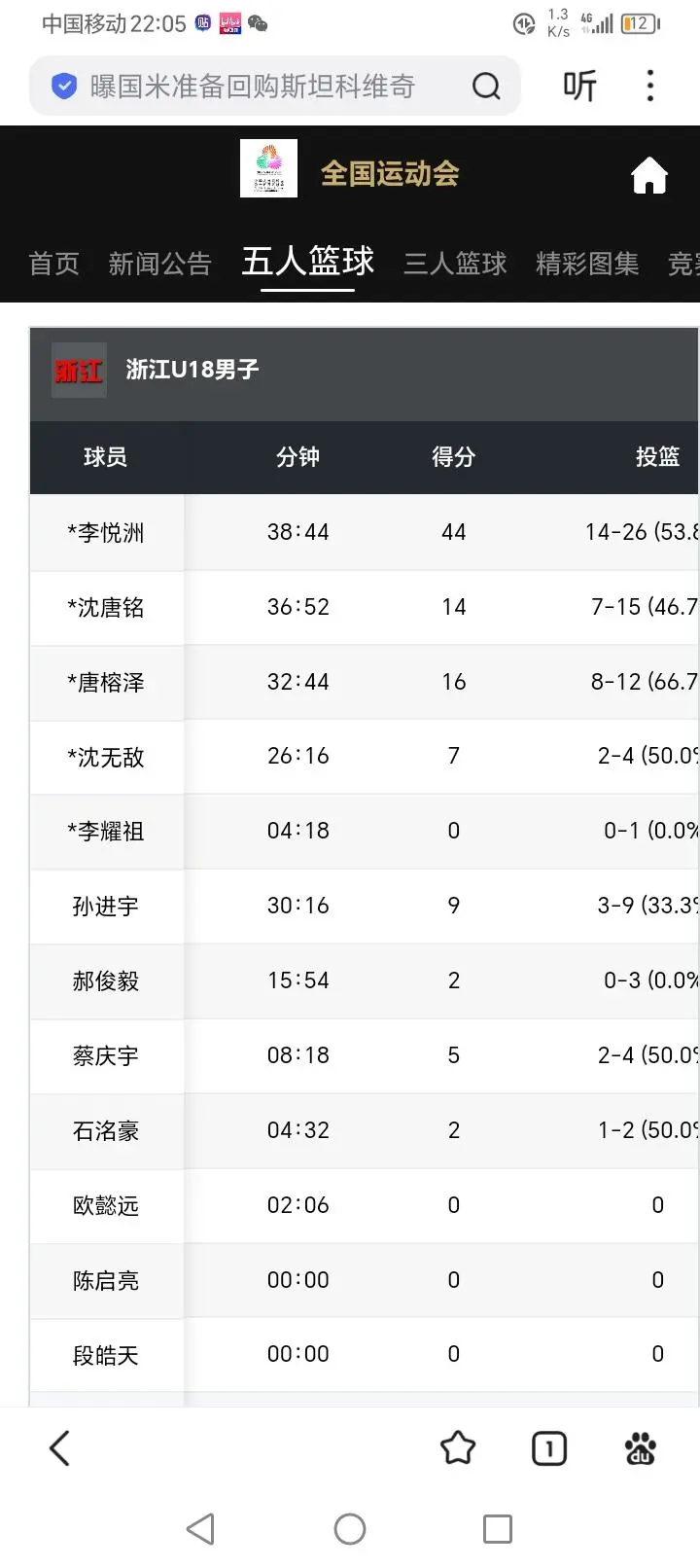 李悦洲本场比赛表现依然超神三分球22中11