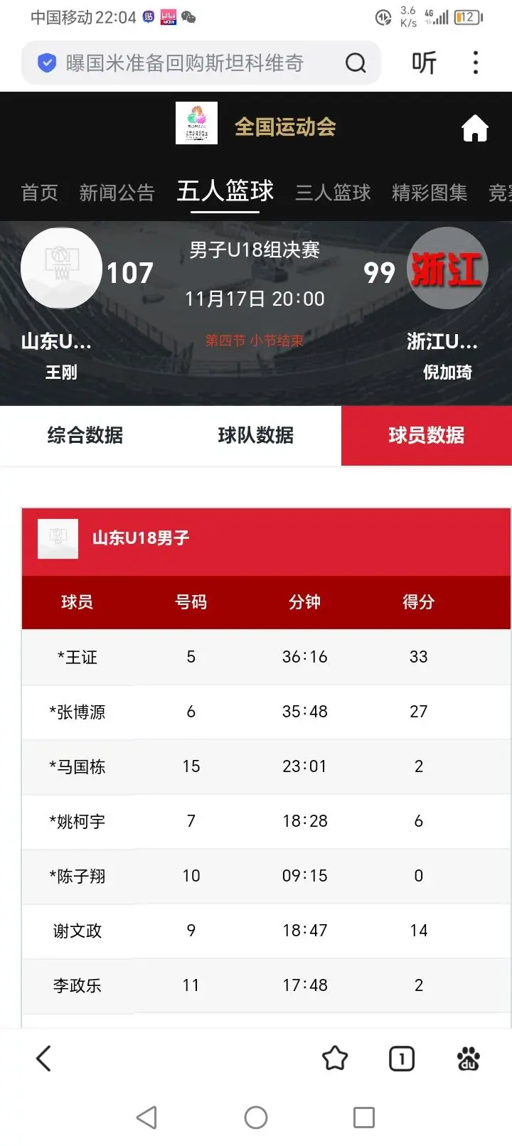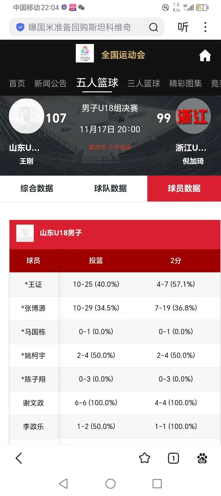 ,可惜石洺豪受伤他独木难支;山东张博源攻防两端都有贡献就是命中率超低,王证本场比赛拯救球队