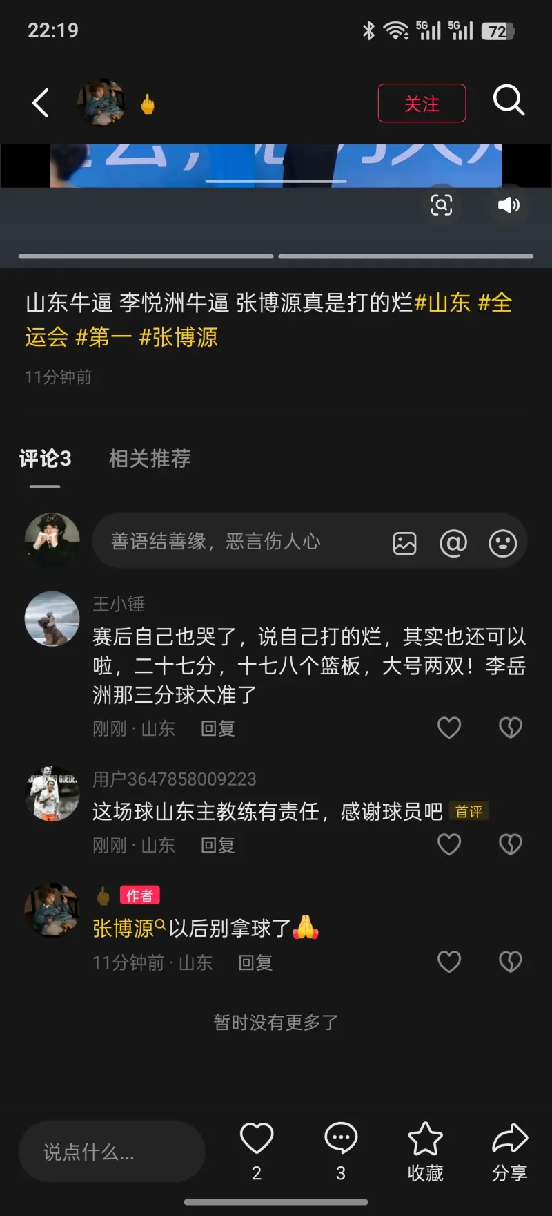 这场比赛很有感触,首先说一下我的个人看法,山东应该是第二名,这种临场表现过不了广东(个人看法)内线经常漏人,外线没办法掐住李悦洲,李悦洲这场的手感爆了,我估计也打服了很多不看好他的人