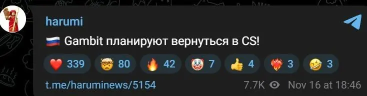 据知名独联体爆料人harumi消息,Gambit俱乐部计划回归CS项目。