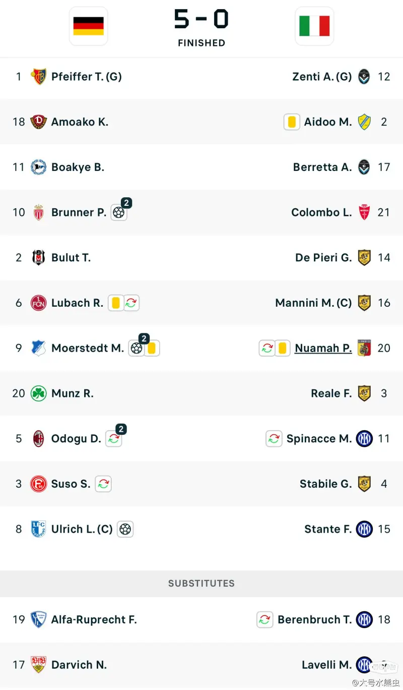 这只意大利U20 球队可以说国米色彩很重。艾多,斯塔比莱,斯坦特,贝伦布鲁赫 ,德皮耶里,拉维利,斯皮纳切一共7人入选。占整个球队的三分之一。